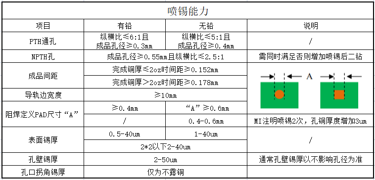 喷锡的工艺制成能力